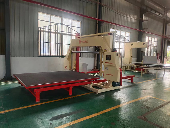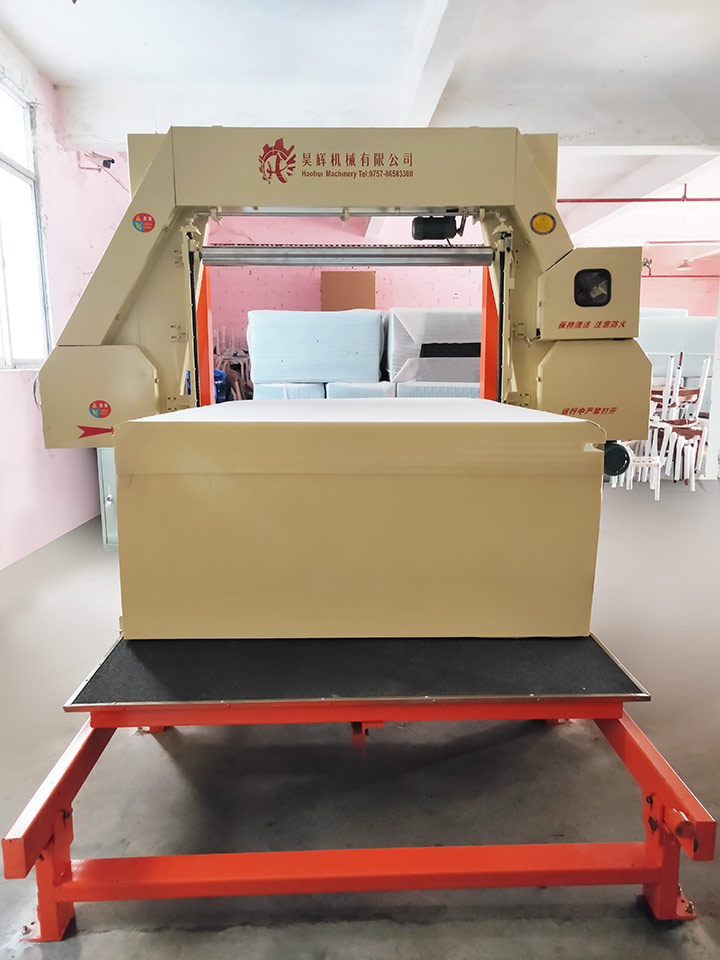 本机主要用于单个方泡海绵的水平往返切片工作,工作台采用自动化数字设置,根据需要的厚度,通过控制箱设定数值。为了防止轻型海绵滑动,可加压辊;操作简单,切割精准。